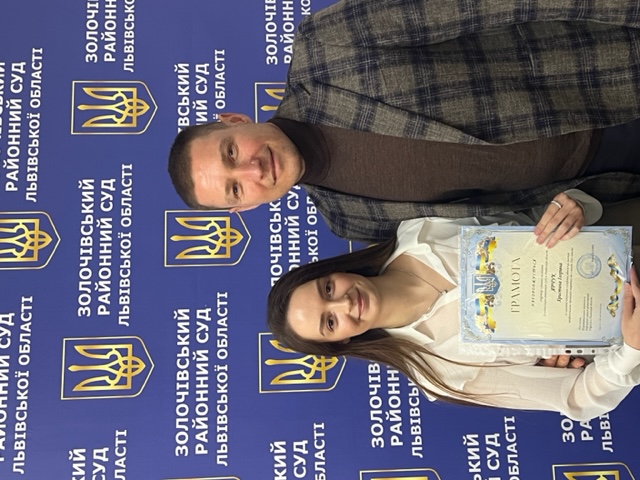 З нагоди професійного свята – Дня юриста, за сумлінне виконання службових обов’язків, високий професіоналізм, активну участь у зміцненні стану організаційного забезпечення діяльності суду відзначено секретаря суду Золочівського районного суду Львівської області Марію ВАРХОЛ Подякою Територіального управління Державної судової адміністрації України в Львівській області, секретаря судових засідань Христину ЯРЧУК нагороджено Грамотою Територіального управління Державної судової адміністрації України в Львівській області.